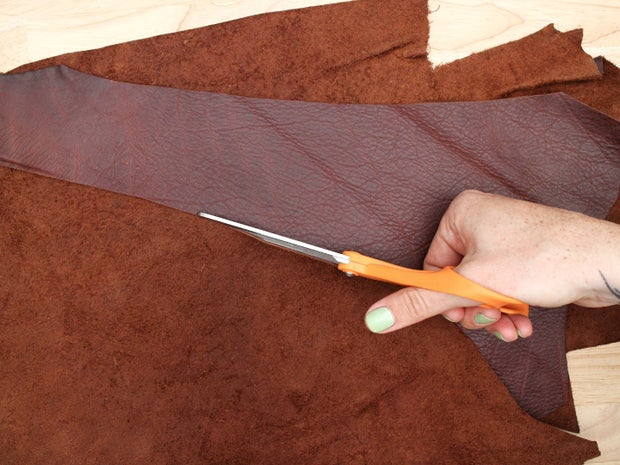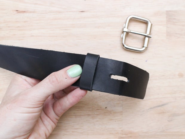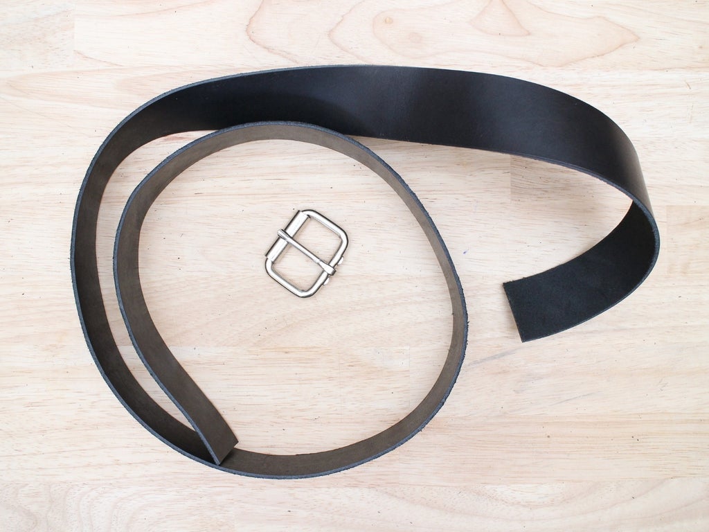 Cut the belt out with a cutting wheel or strap cutter, and attach a buckle of your choice as we did in the previous lesson.