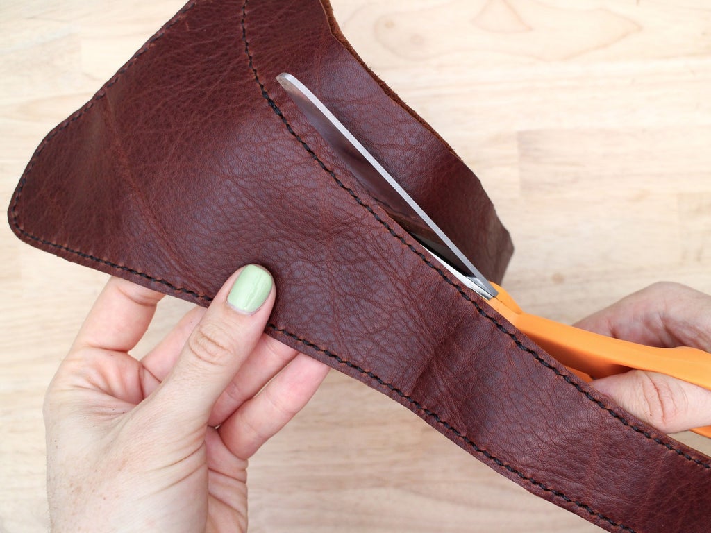 Now, with scissors, or an X-Acto knife, carefully cut 1/8" out from the sewing line to create a clean edge.