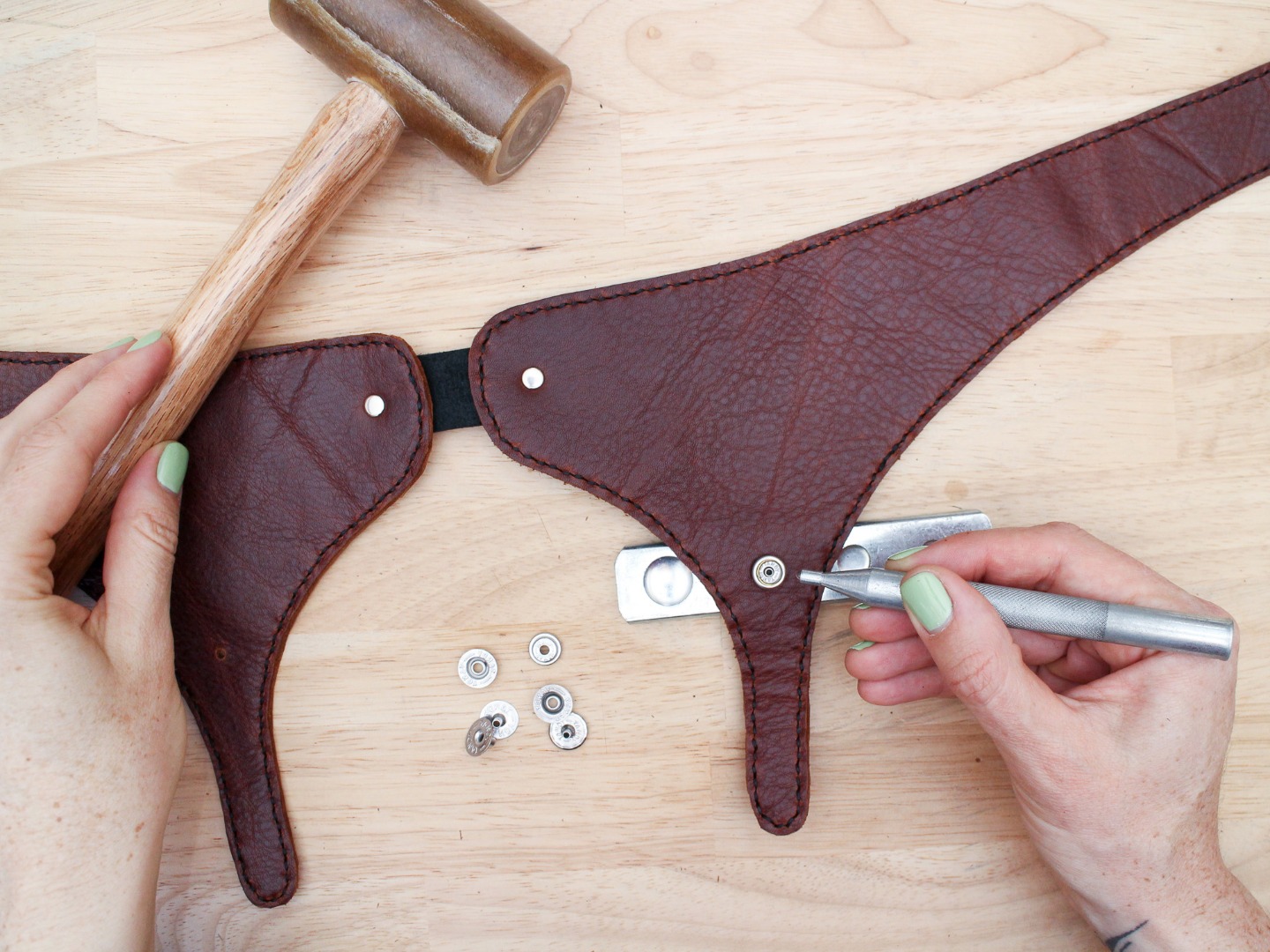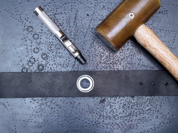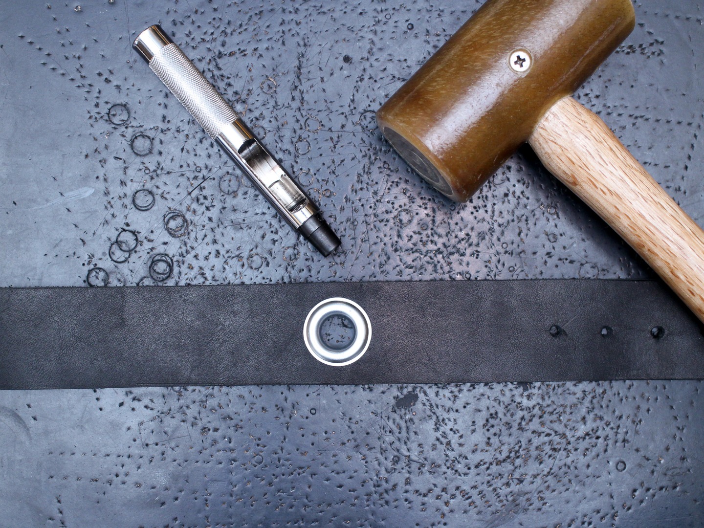 If you want to connect things to your belt or turn it into a pocket belt, adding grommets can be very useful.