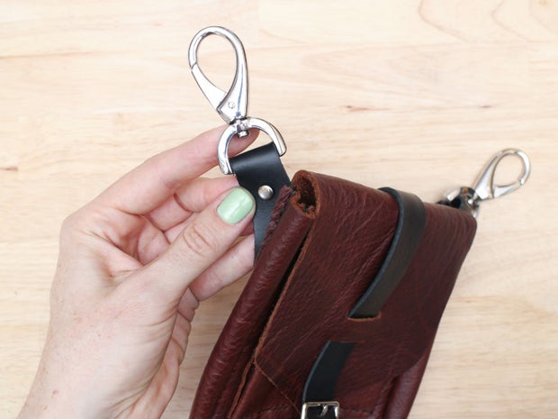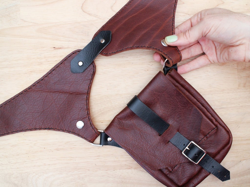 I've shown you a couple of simple options for creating a leather belt that can attach to a bag, and I'm sure you can imagine a lot more designs from here! You could try different shapes for the shaped leather belt, use different hardware, even incorporate another a smaller pocket into the belt itself. If you made two identical small bags, you could create a similar belt with bags on both sides!